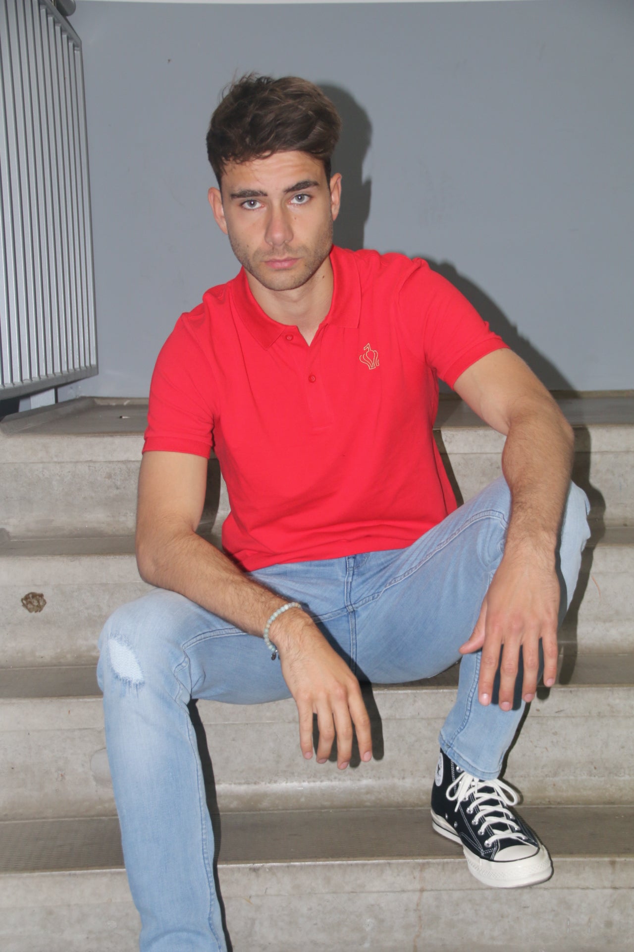 The materials used in our clothes are spun and combed organic cotton and recycled polyester.